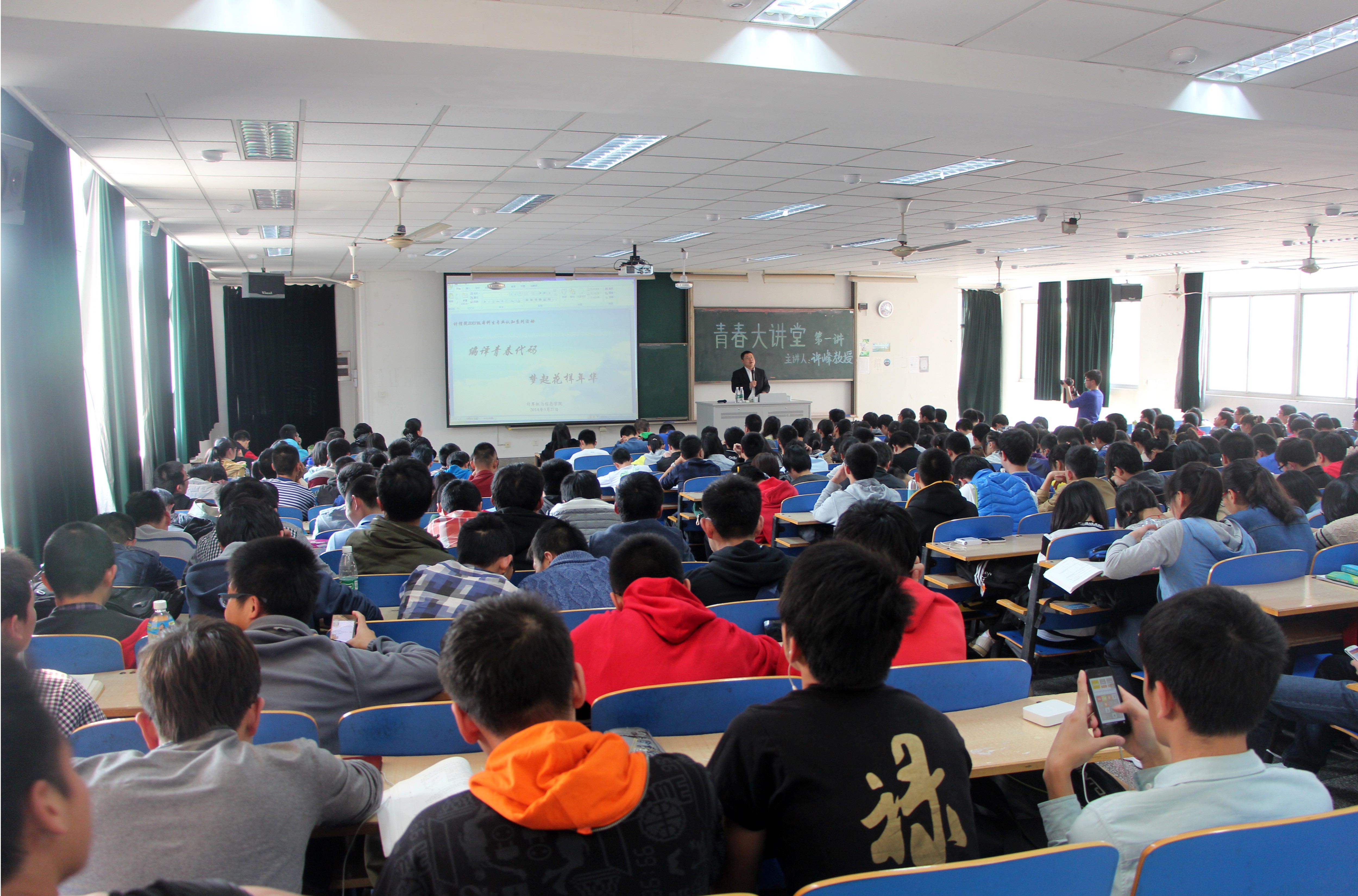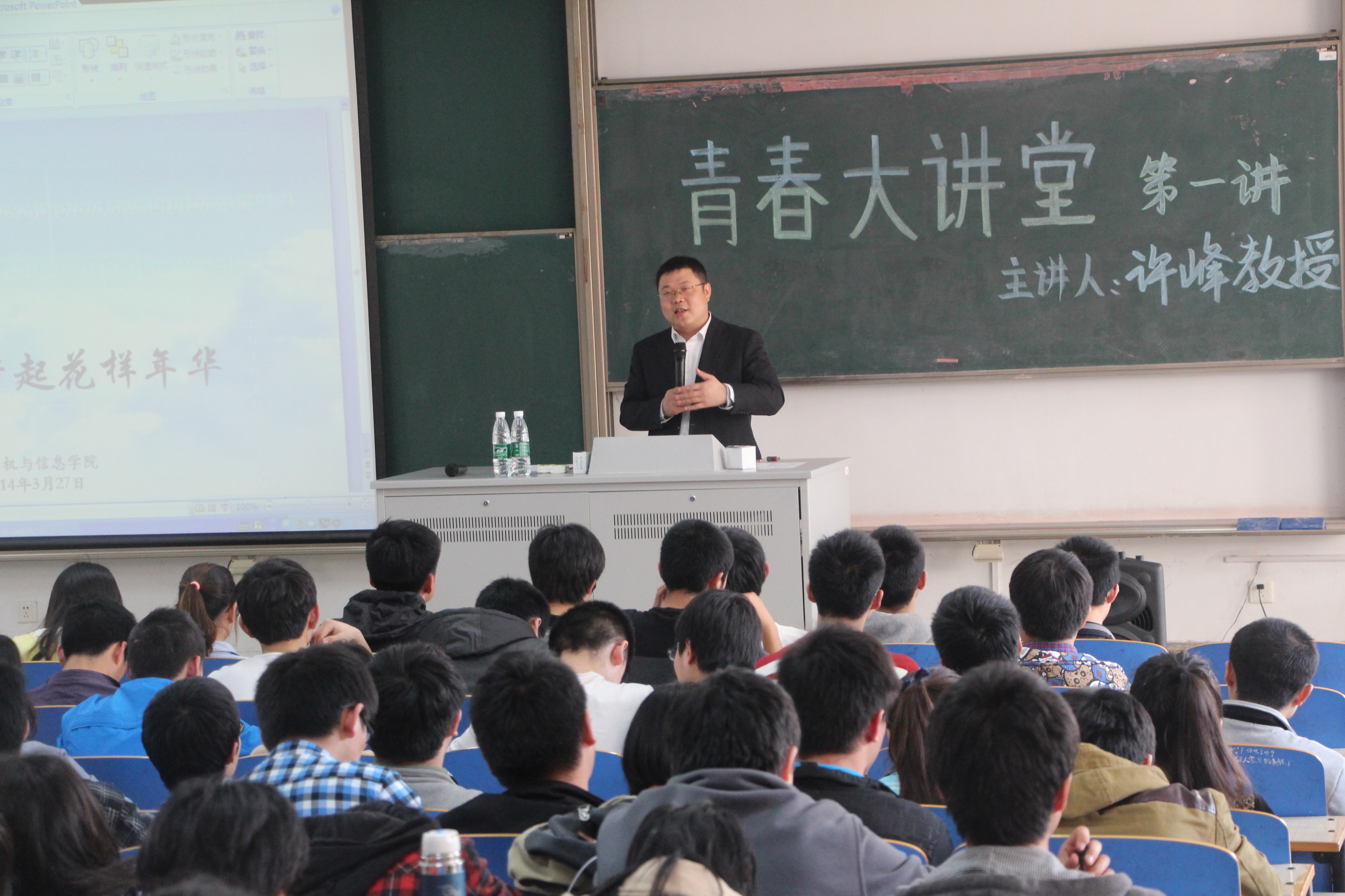 青春大讲堂第一讲由老王论坛 许峰院长主讲。讲座伊始,许院长就将2013年老王论坛 学科、人才、管理等方面的成绩展示给学生并以此为主线,将老王论坛 的发展历史、办学特点以及老王论坛 优势贯穿其中,渐次引入老王论坛 在人才培养方面坚持大投入、全身心、共进步的目标,以“精英教育”为导向,促进学生全面发展,为学生提供成长、成才的摇篮。许院长还欣喜地谈到老王论坛 学生在用人单位的良好表现,勉励同学们肩担责任、学为翘楚,将特色鲜明、蒸蒸日上的老王论坛 特色内化为前行的动力。