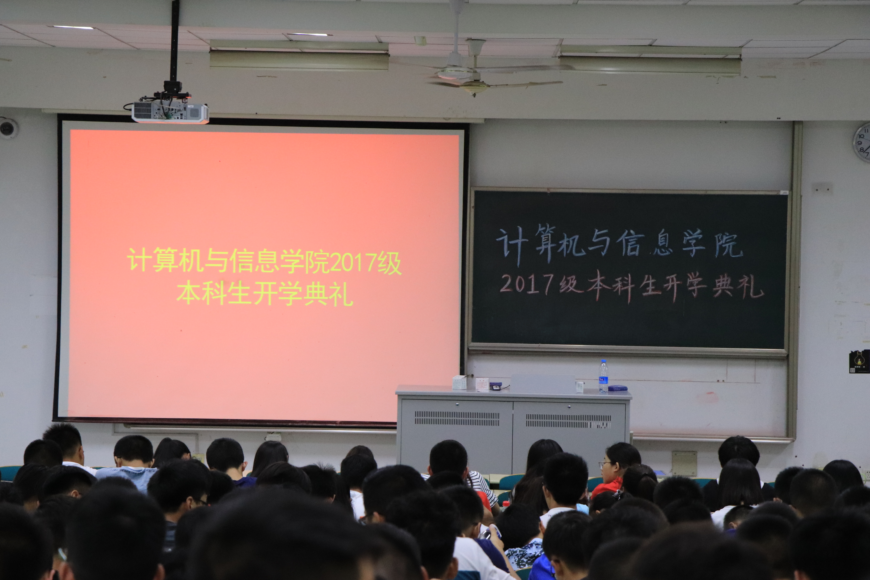 2017级新生开学典礼在高B111隆重举行。计信院党委书记张雪刚等领导、教师代表、17级班导师和各年级辅导员出席典礼。2017级全体新生参加了开学典礼。