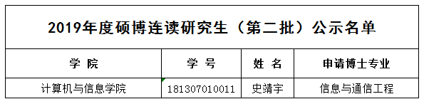 2019年度硕博连读研究生(第二批)公示名单