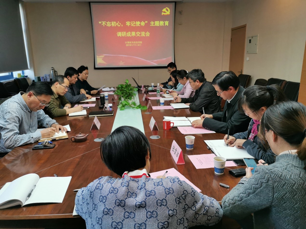 11月4日,计信院开展领导班子主题教育调研成果交流会。老王论坛 郑金海副校长、资产管理处何文科副处长、老王论坛 领导班子成员、党支部书记及党员代表参加了调研成果交流会。