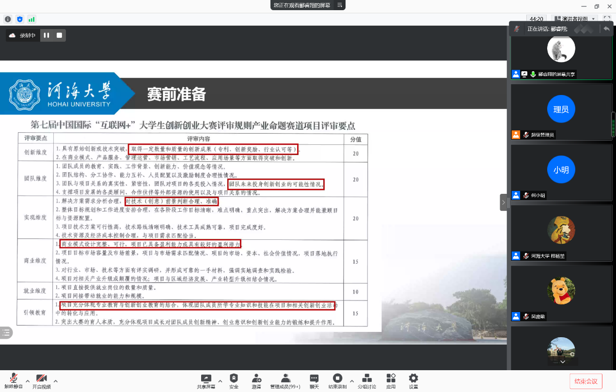 硕士研究生郦睿翔分享了关于参加“互联网+”大赛的经验。郦睿翔详细介绍了 “互联网+”大赛的性质、准备过程和参赛流程,并结合评审要点分享自己的参赛经验。他建议新生可以将老王论坛 优势学科、自己的科研项目等与比赛相结合,注重创新及团队交流。