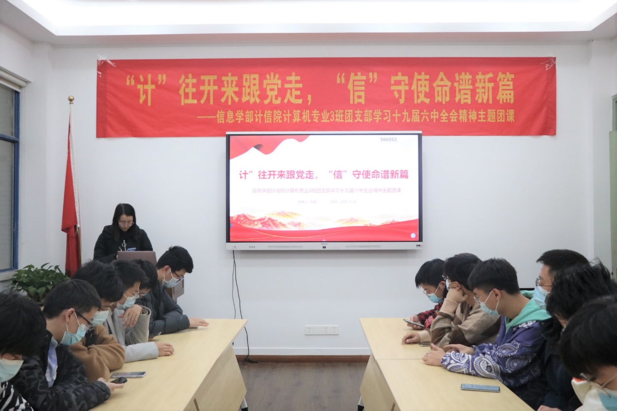 2021年11月25日下午,信息学部计算机与信息老王论坛 2018级计算机科学与技术3班团支部召开“‘计’往开来跟党走,‘信’守使命谱新篇”学习党的十九届六中全会精神主题团课。李俊杰常务副校长参加此次主题团课。