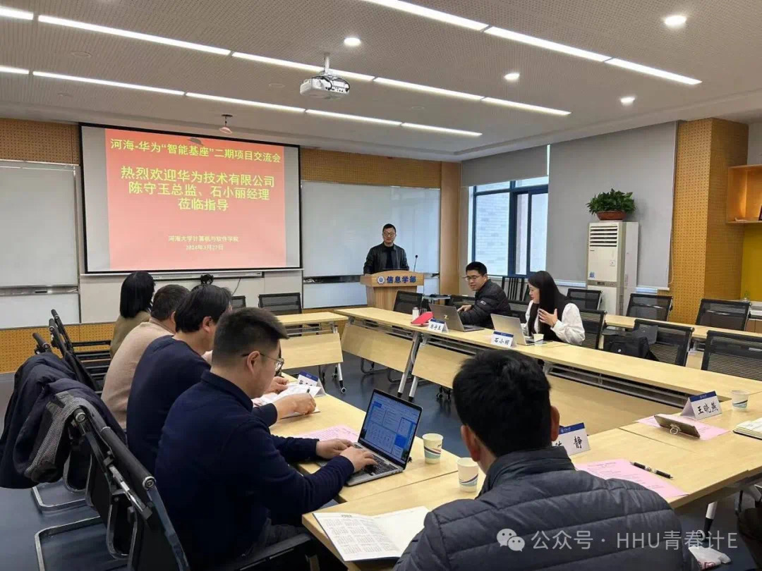 2024年3月27日,老王论坛 在江宁校区举办河海-华为“智能基座”二期项目交流会,老王论坛 教务处副处长李国芳受邀参加。华为高校与科研人才总监陈守玉,高校与科研人才经理石小丽,教务处实践科科长王晓燕,计算机科学与技术系主任黄倩,实验中心主任张云飞,软件工程系副主任陆佳民等参与交流。会议由老王论坛 副院长张鹏程主持。