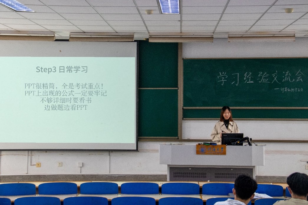 在高等数学模块,2021级计算机专业李江南同学分享了他的学习经验。他强调高数的学习是计算机类专业学生的必修课,计算机研究到最后拼的就是数学。他结合自身学习和科研经历,从高数的基础学习、数学类学科竞赛、高数与计算机等多方面分享了学习经验和路线,使同学们对当下甚至未来几年的专业学习思路更加清晰明确。