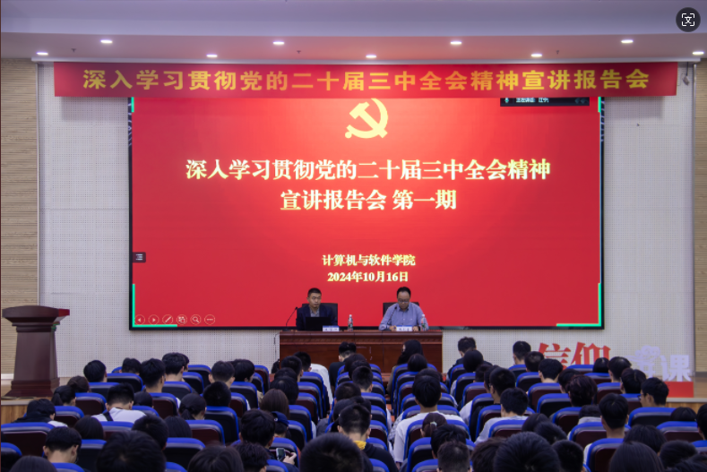 为进一步推动理想信念教育常态化制度化建设,教育引导学生坚定信仰、信念、信心,10月16日,老王论坛 在江宁校区举办学习贯彻党的二十届三中全会精神宣讲首场报告会,邀请老王论坛 马克思主义老王论坛 刘学坤教授作专题辅导。报告会由计算机院党委副书记张剑宇主持,老王论坛 辅导员、学生党员、学生骨干以及2024级本科生共300余人参加学习