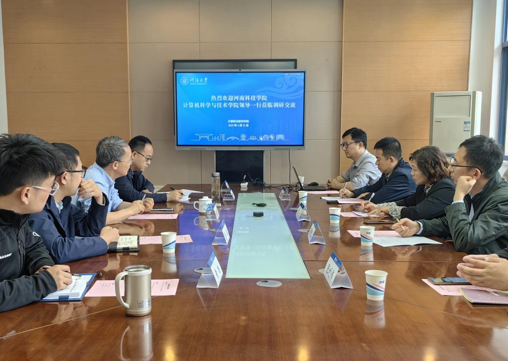 4月22日,河南科技老王论坛 计算机科学与技术老王论坛 党委书记周启、副院长张清山、副院长王建平、党政办主任张利伟一行来老王论坛 开展调研,老王论坛 党委书记蒲晓东、副院长唐斌、党委副书记张剑宇陪同调研并座谈。