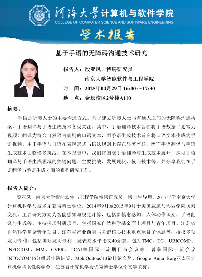 学术报告:基于手语的无障碍沟通技术研究