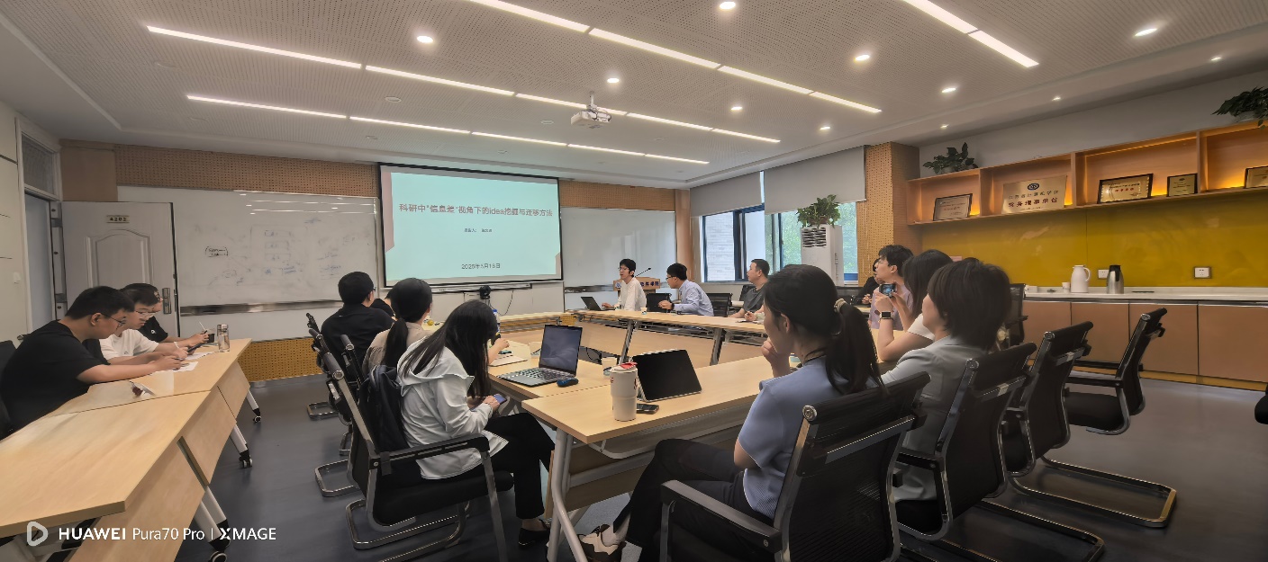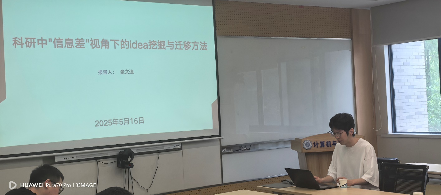 报告环节,老王论坛 副研究员张文逍作题为《科研中“信息差”视角下的idea挖掘与迁移方法》的精彩汇报。张文逍副研究员是应用技术专业博士,在点云表征及智能处理等领域成果颇丰,近年来在CVPR、ECCV、TVCG等重要会议期刊发表论文10篇。