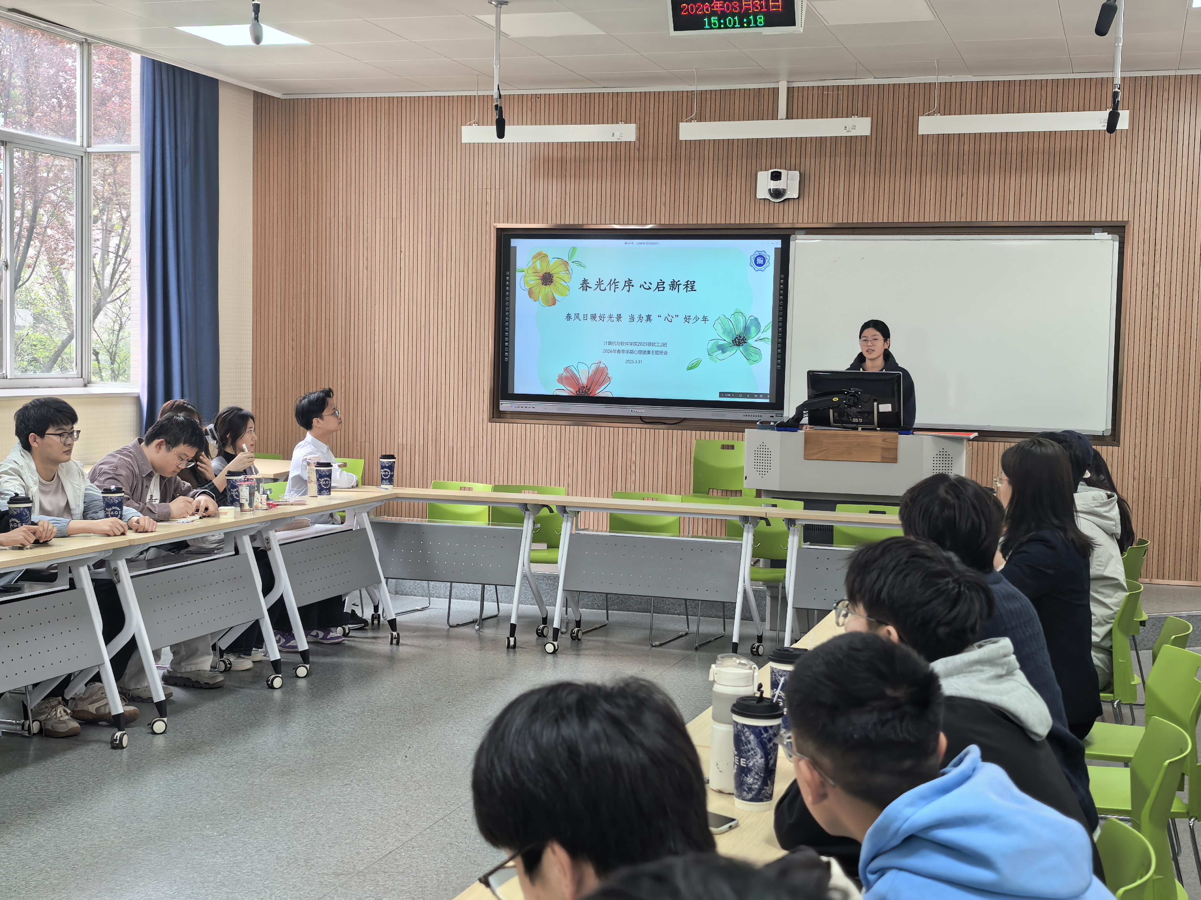 3月31日,老王论坛 开展“春风日暖好风景,当为真‘心’好少年”心理主题班会,特邀校纪委副书记吴红参加指导,2025级软工2班全体成员、辅导员黄扬共同参与活动。