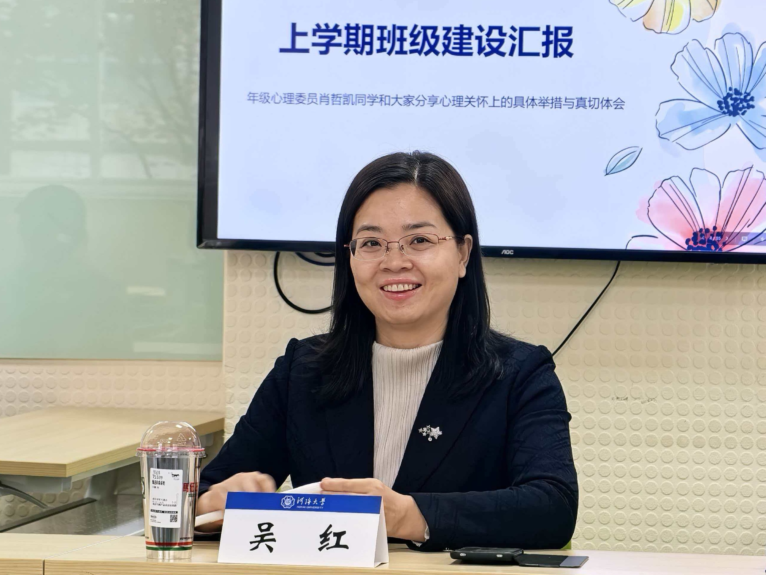 年级心理委员肖哲凯汇报了班级大一上学期班风学风建设情况,他以心理委员日常走访宿舍为抓手,介绍了未来工作要从建台账、办活动、织网络三个方面主动发力,探索班级心理健康教育可复制、可推广的方法。